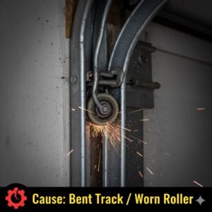 Your door goes off track when the rollers cannot stay inside the rails. This happens from loose brackets, bent track sections, worn rollers, or debris blocking the rails.